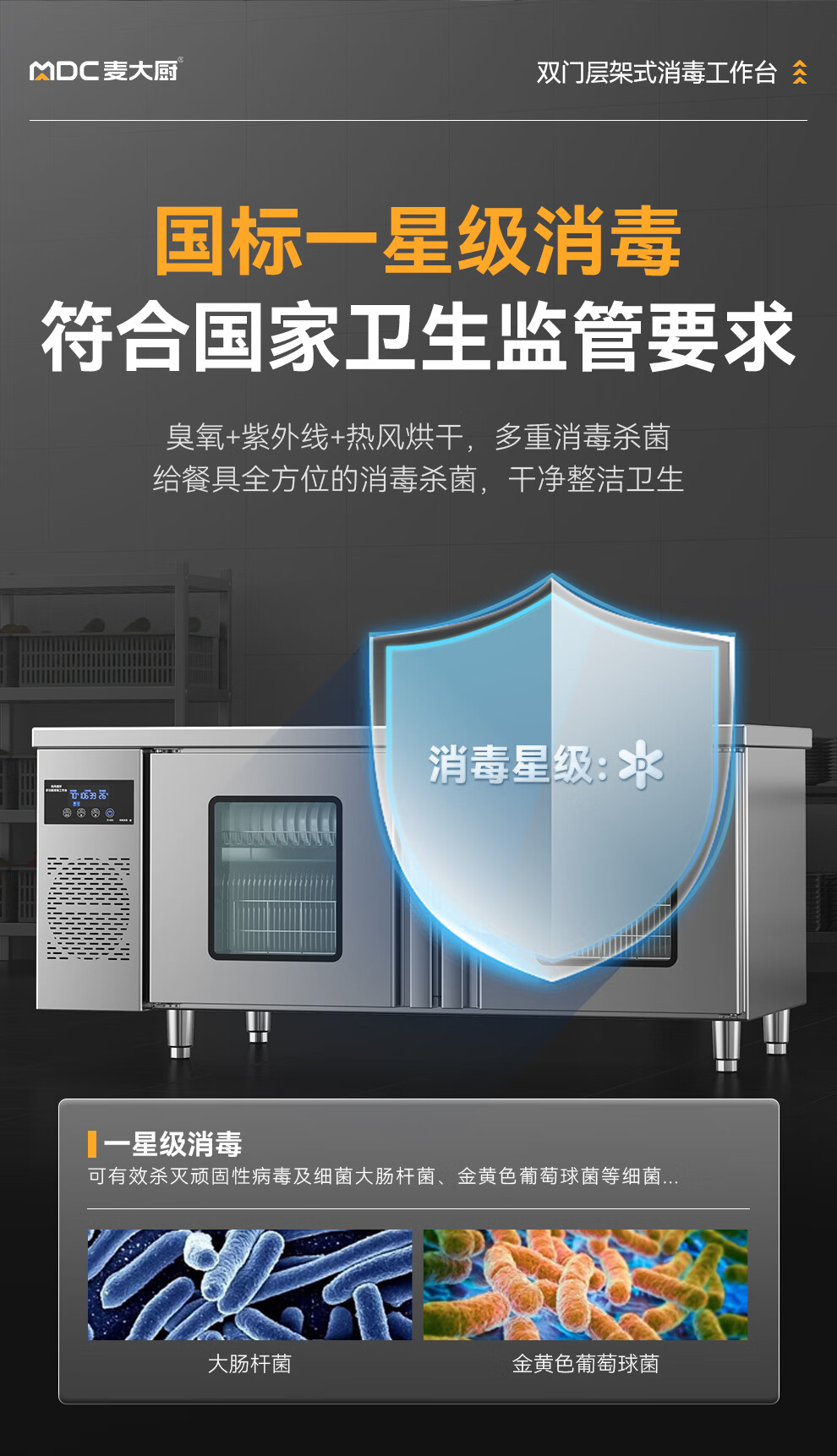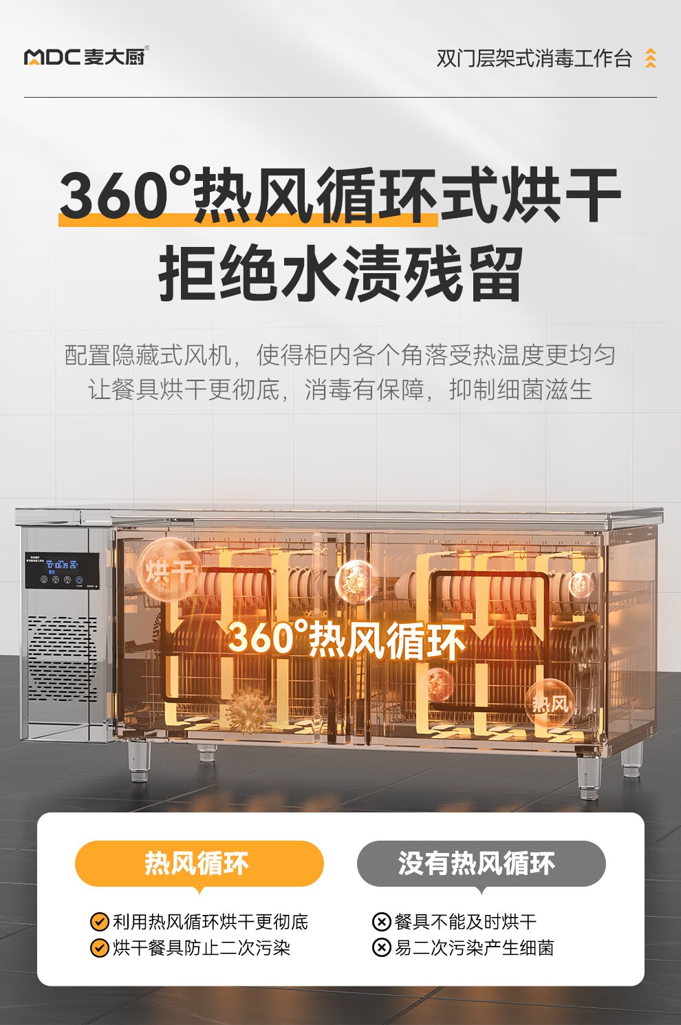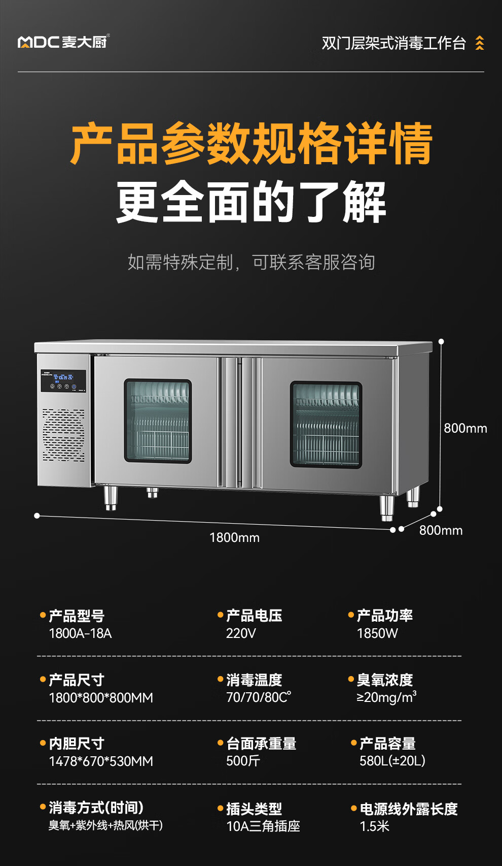 麦大厨1.8m双门层架式臭氧紫外线热风循环消毒工作台