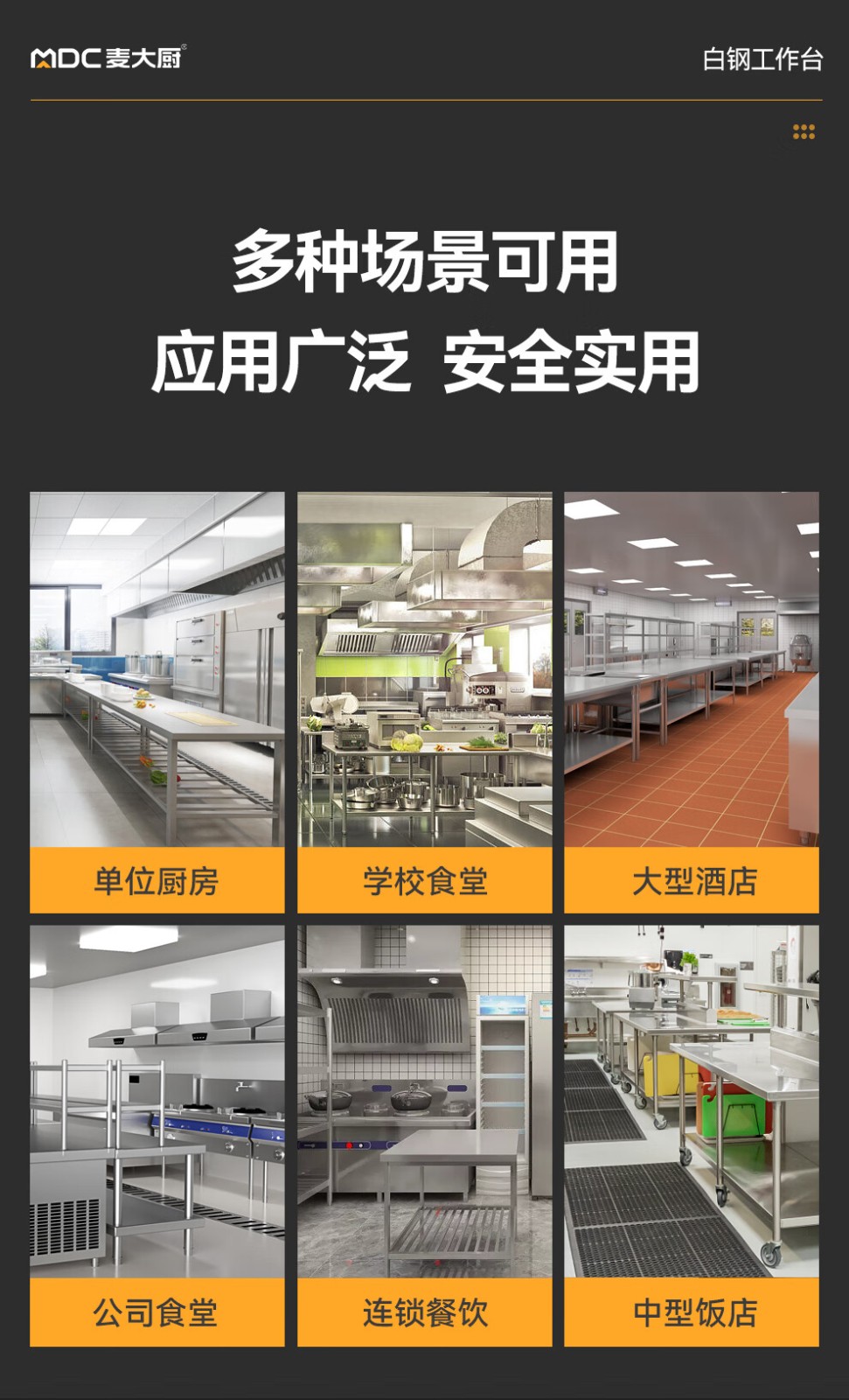 麦大厨1.8m升级款不锈钢工作台打荷台单层工作台