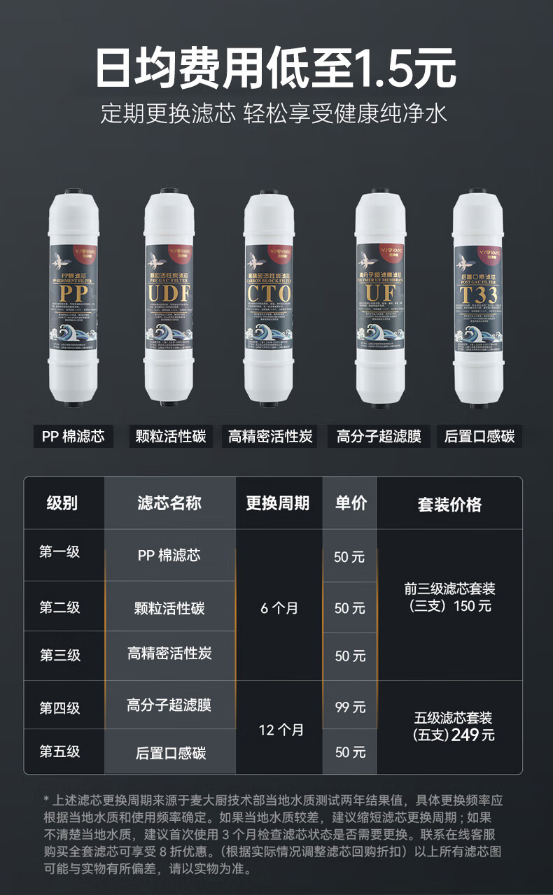 麦大厨2KW高背龙头饮水机一开一温快接五级超滤直饮机