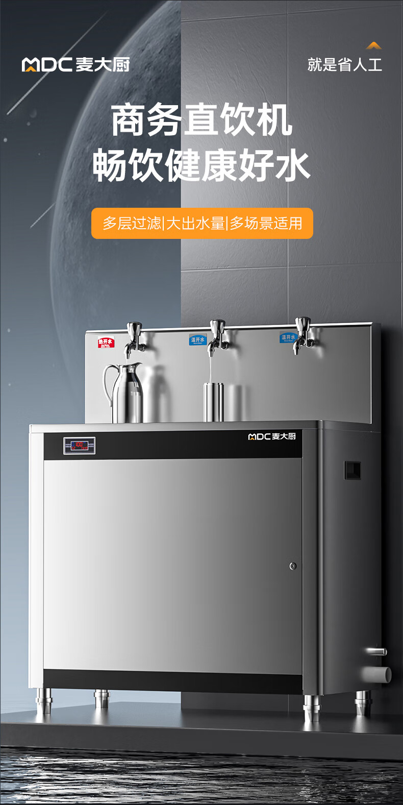 麦大厨3KW高背龙头饮水机一开二温快接五级超滤直饮机