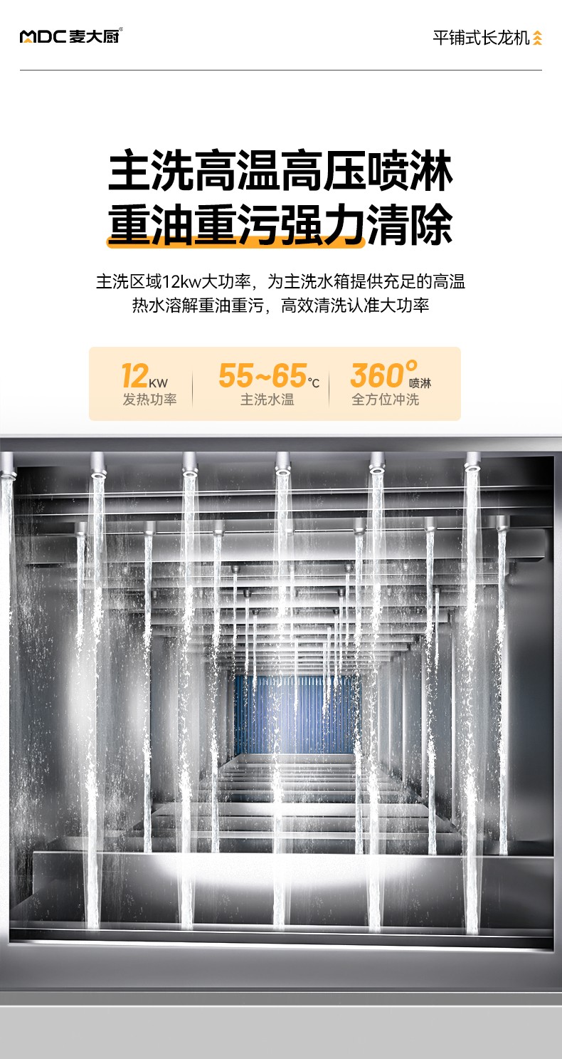 麦大厨3.1m豪华款平放式双缸双喷淋学校食堂洗碗机