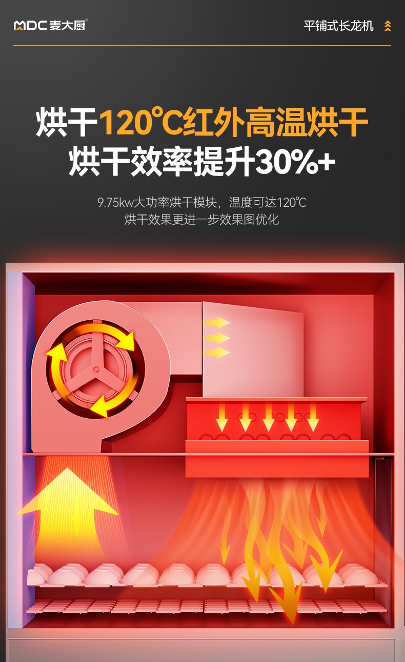 麦大厨4.9m豪华款平放式单缸双喷淋双烘干商用大型洗碗机