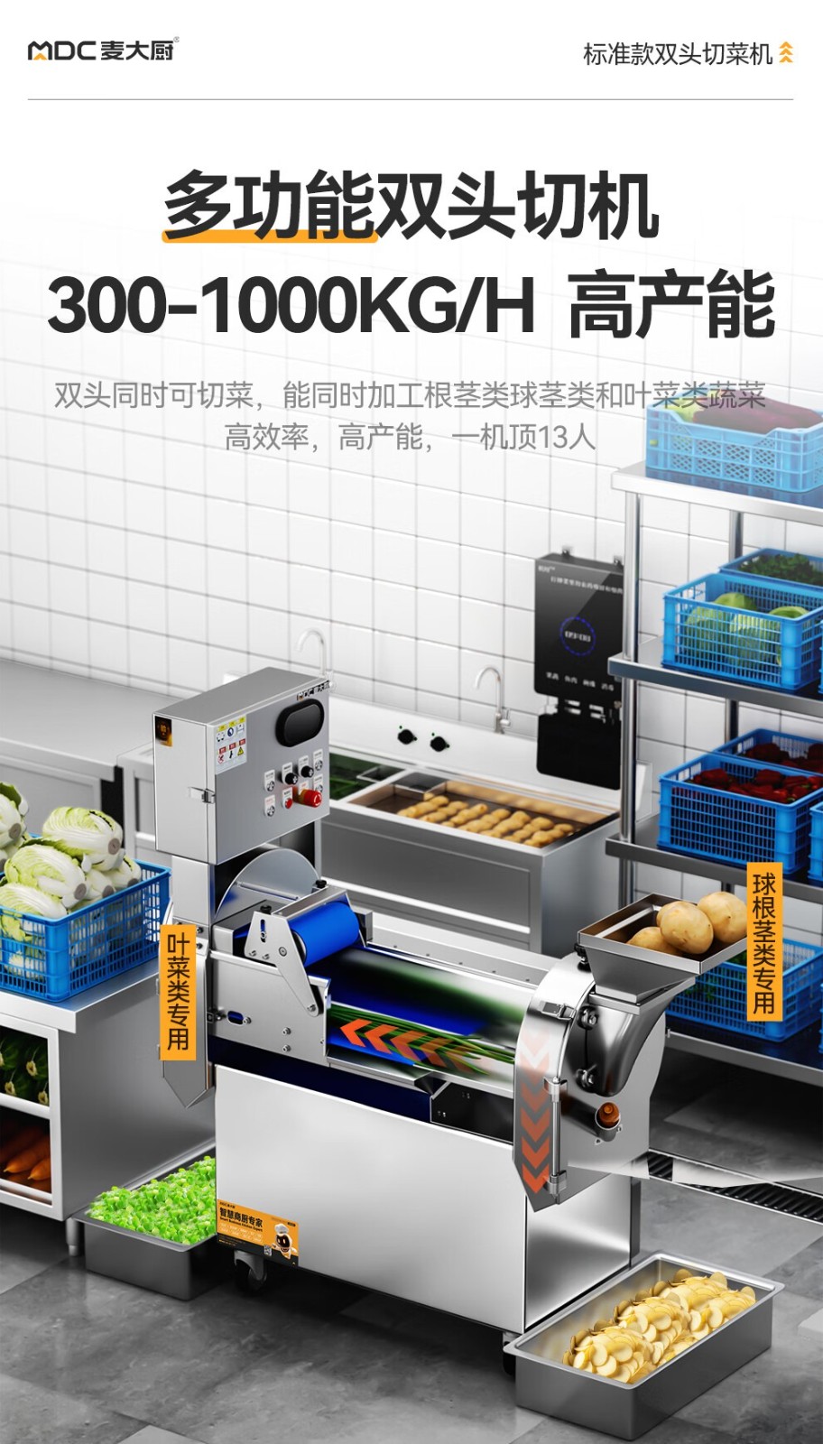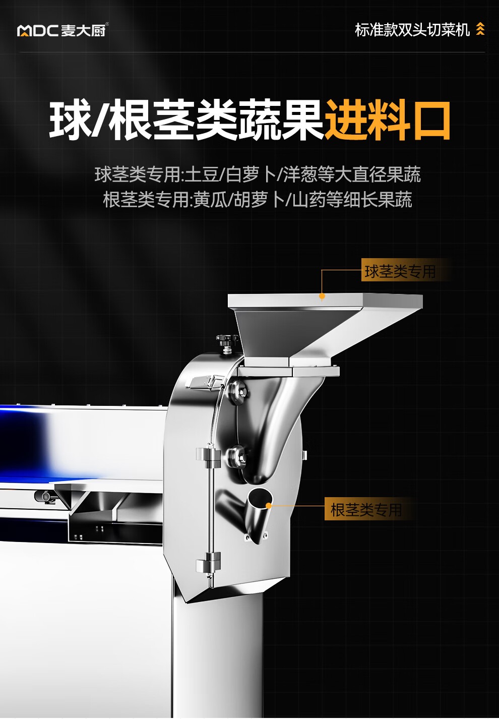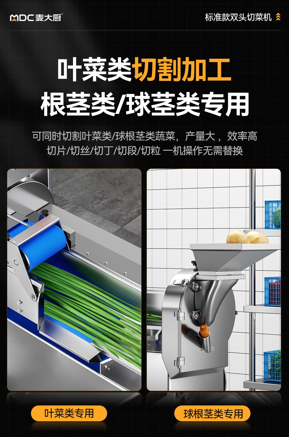 麦大厨商用叶菜球根茎类切段切丁机标准款双头多功能切菜机