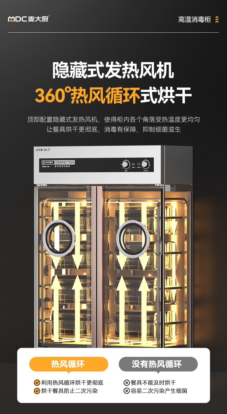 麦大厨豪华旋钮型双门单控4层热风循环高温消毒柜3.5KW