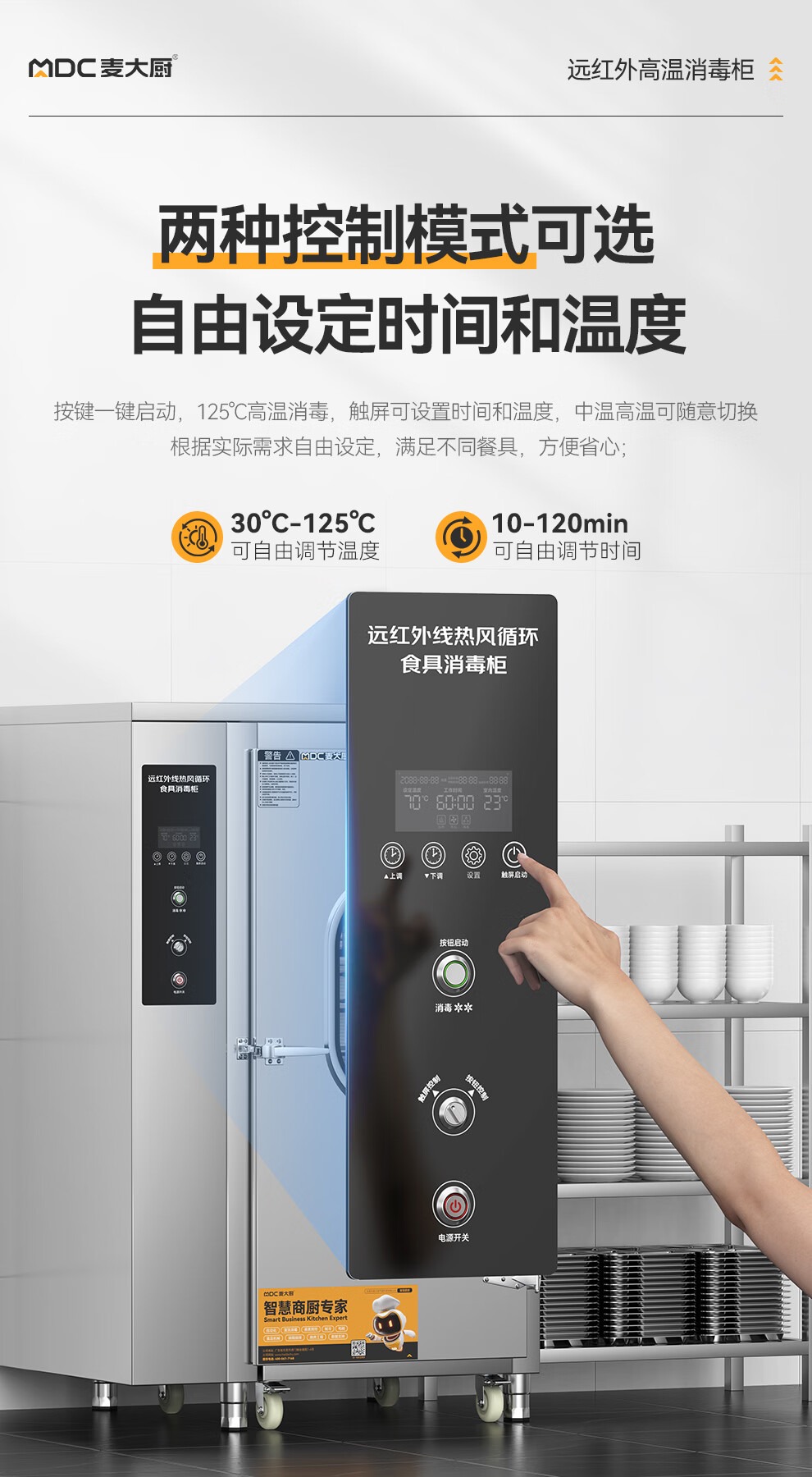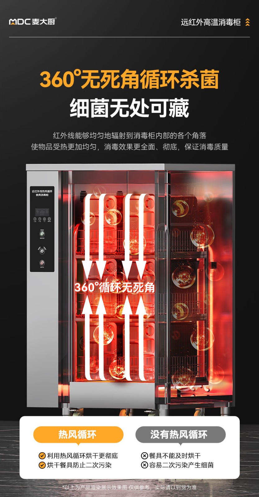 麦大厨380V工程款单门单控3层推车式远红外线热风循环高温消毒柜4.5KW