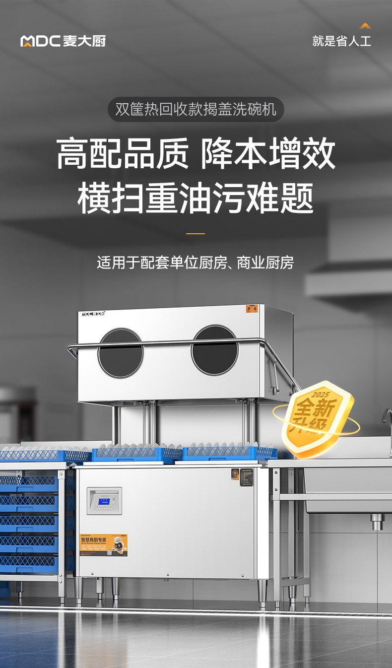 麦大厨RNHS-P50双框热能回收款揭盖式洗碗机10.5kw