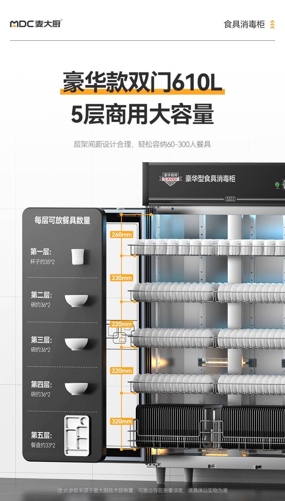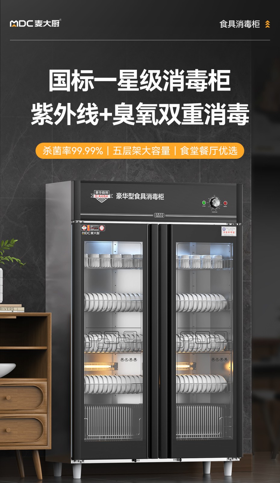 麦大厨豪华旋钮型5层双门中温光波食具消毒柜(臭氧+紫外线+热风循环)1250W