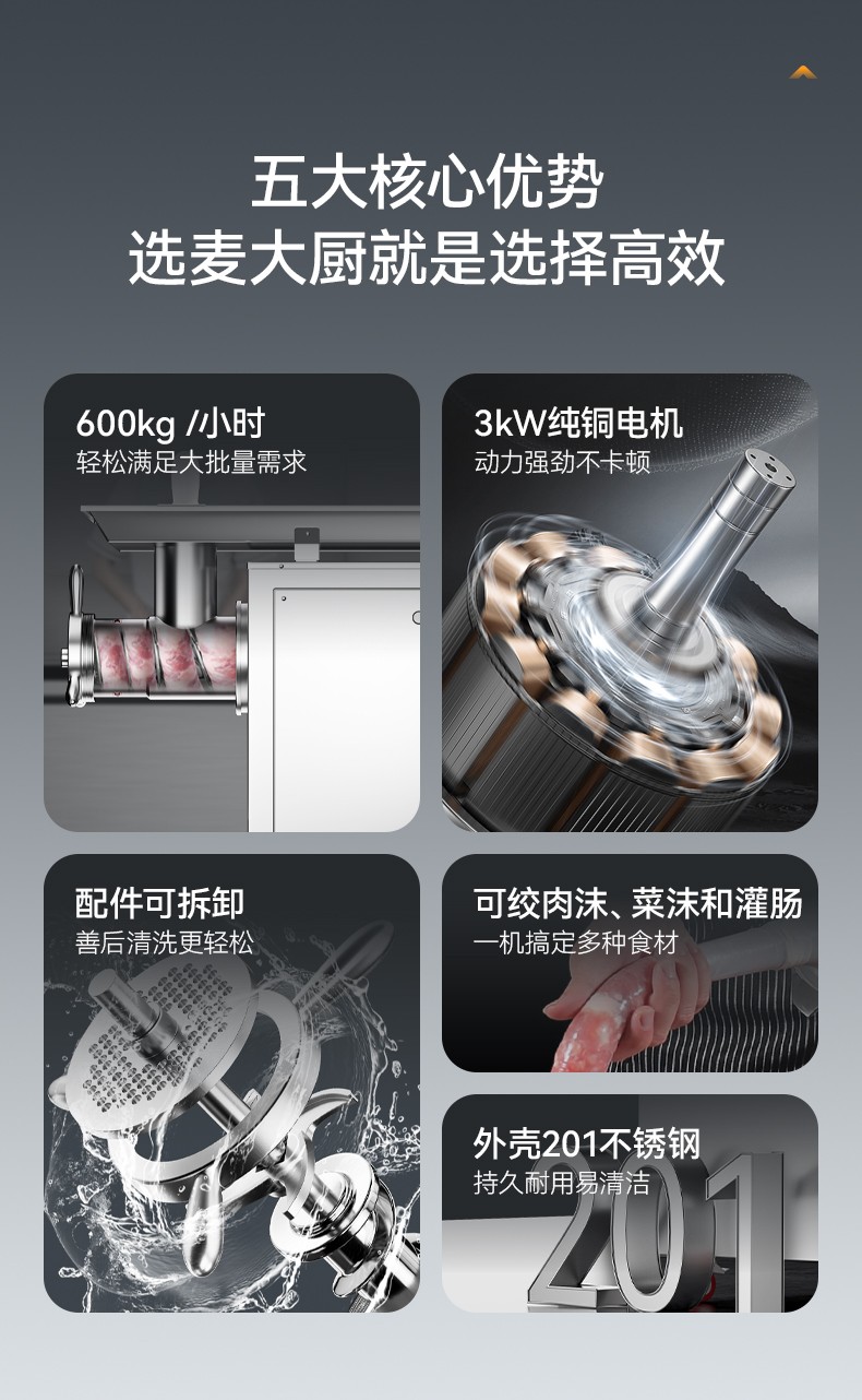 麦大厨豪华款3KW多功能可脱卸灌肠机碎肉机商用立式绞肉机