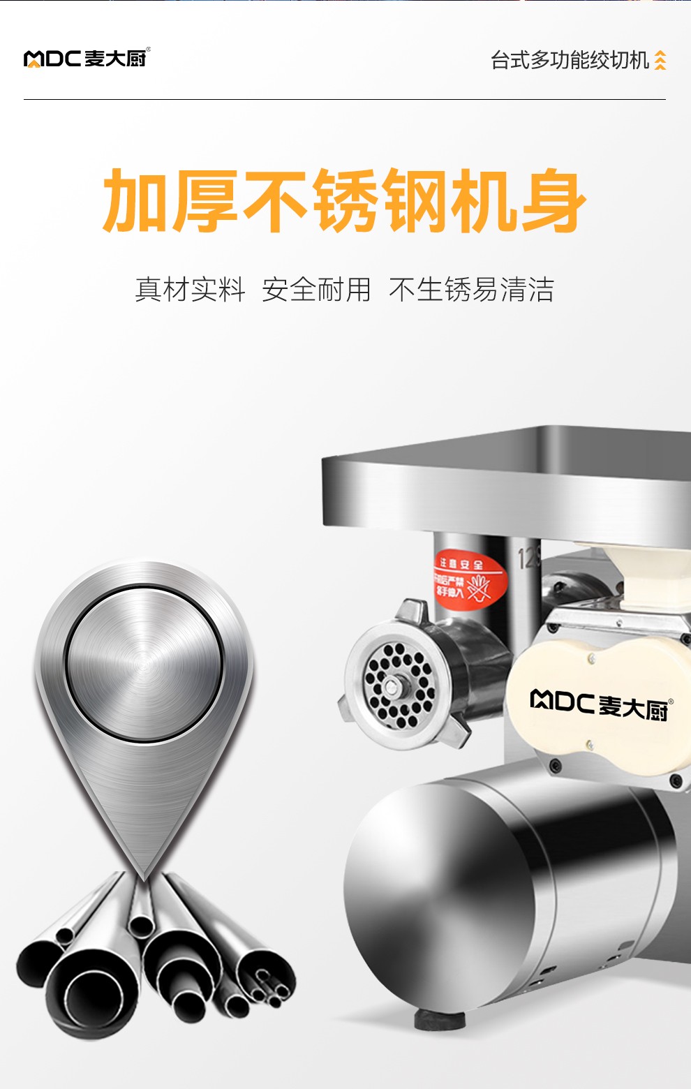 麦大厨1.8KW商用多功能可脱卸台式绞切肉机灌肠机碎肉机