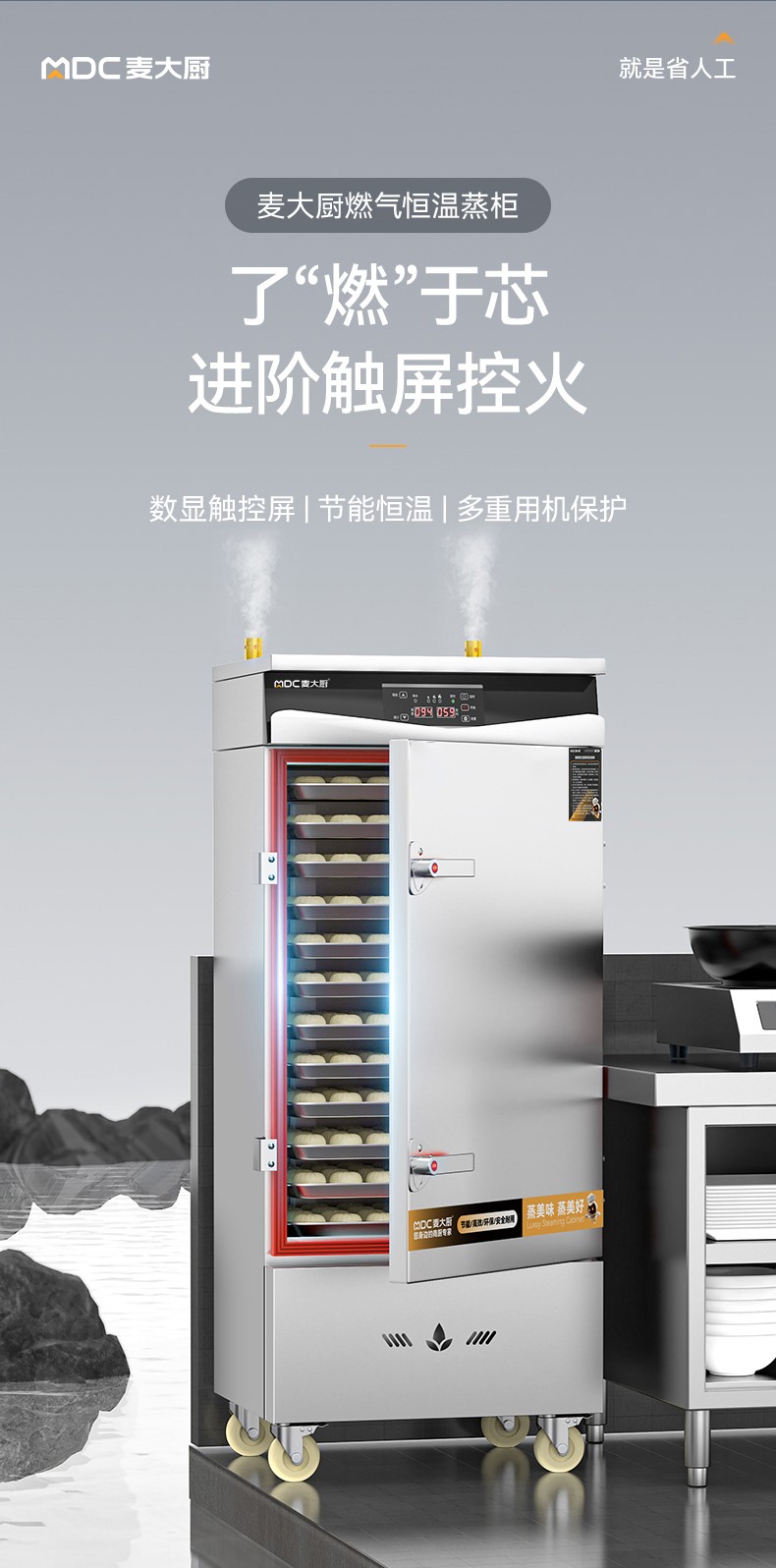 麦大厨商用单门12盘智能恒温燃气蒸饭柜大型食堂蒸饭箱