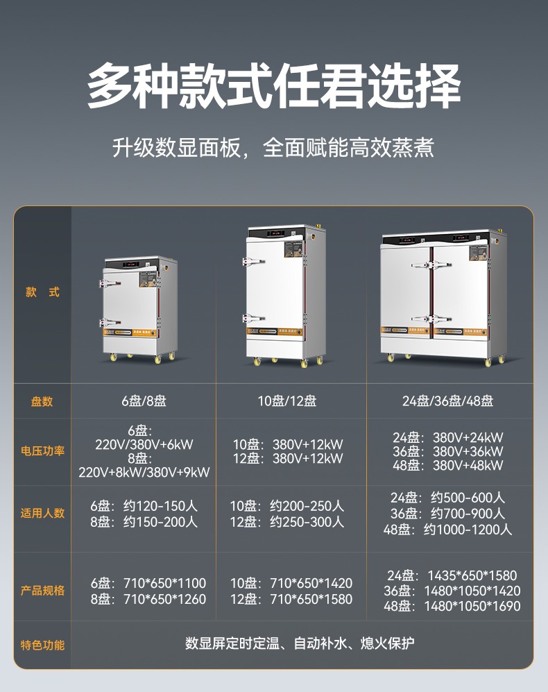 麦大厨商用蒸饭柜8盘变频款智能电蒸箱电热蒸饭车全自动蒸柜