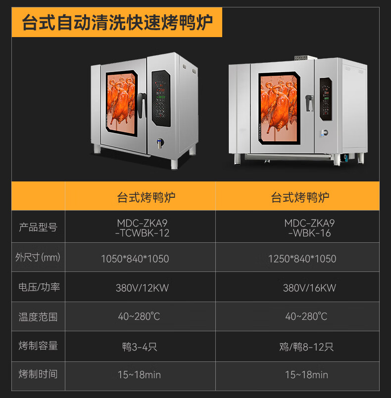 麦大厨烤鸭炉带自动清洗电热商用酒楼烤鸭店烤鸭炉380V 16KW