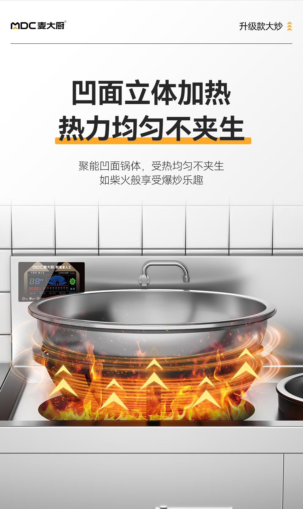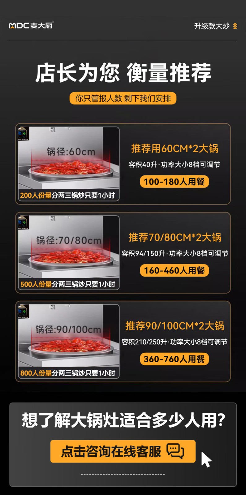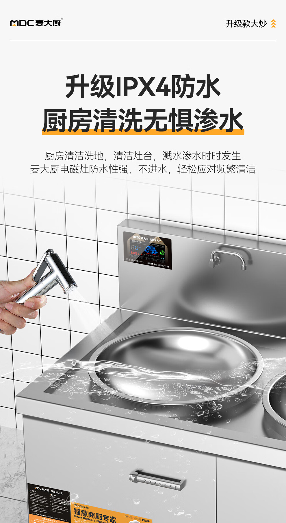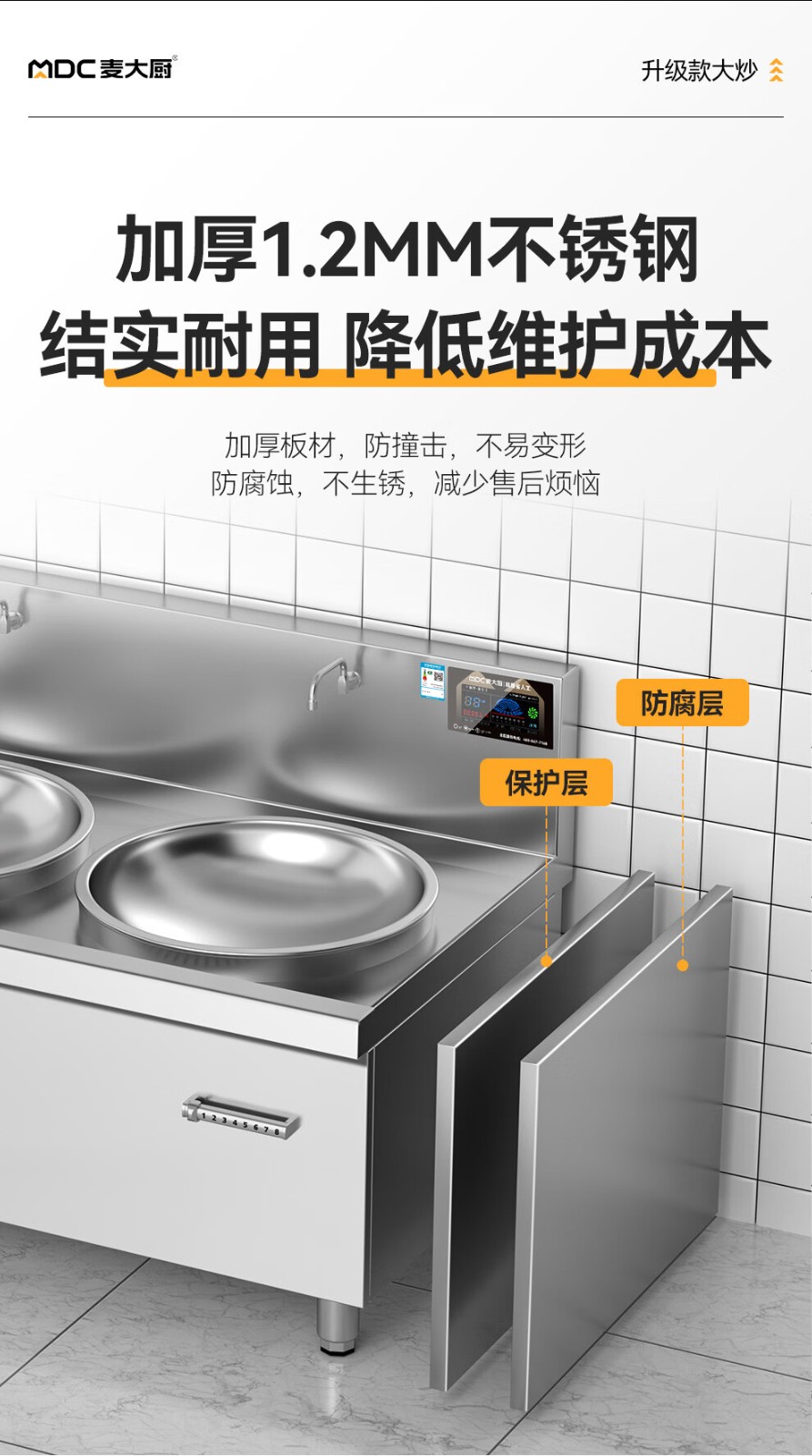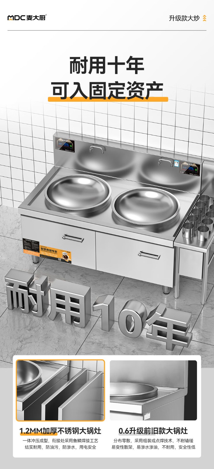 麦大厨食堂大炒锅电灶台升级款15KW双头工厂食堂大锅灶