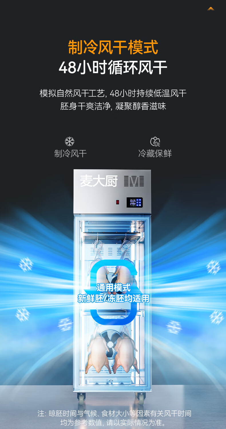麦大厨商用晾胚柜节能至尊款880W单门烤鸭风干柜