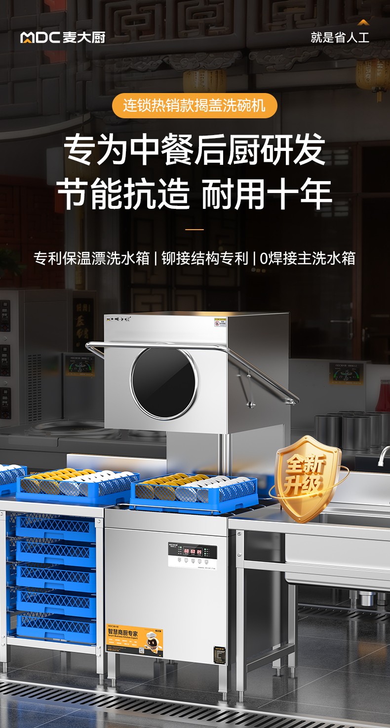 麦大厨3.0连锁热销款双泵透窗揭盖式洗碗机商用12kw
