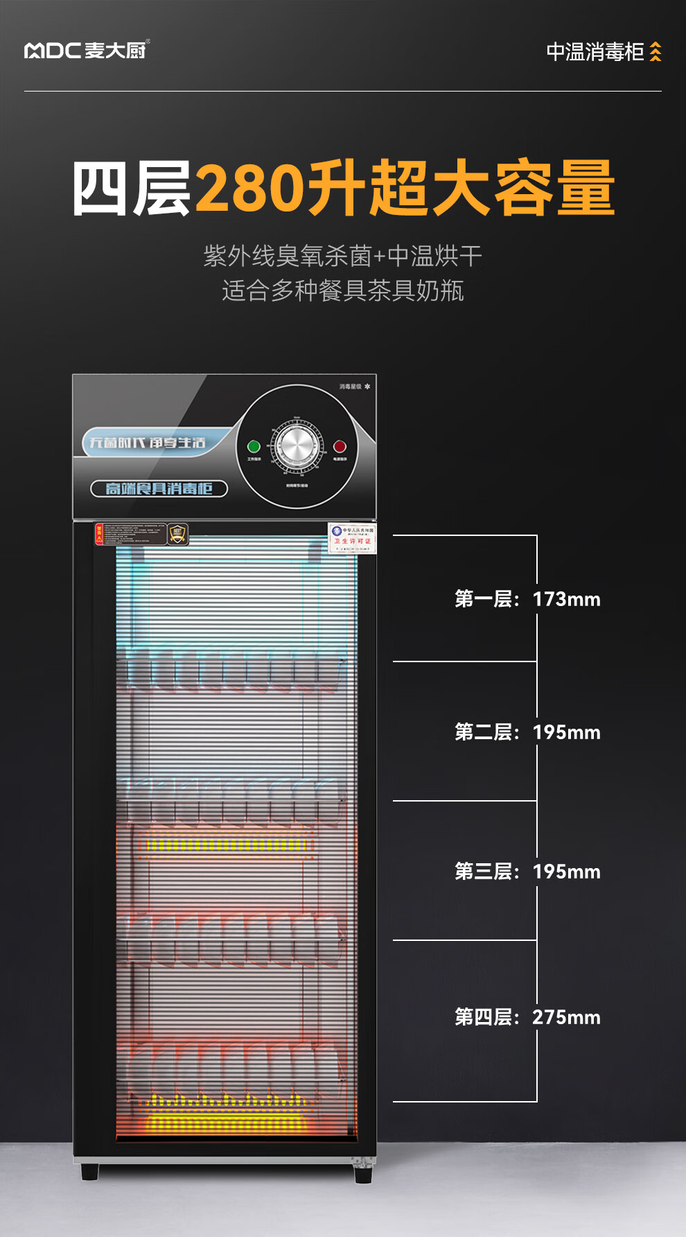 麦大厨高端款220V单门280L中温食具消毒柜610W
